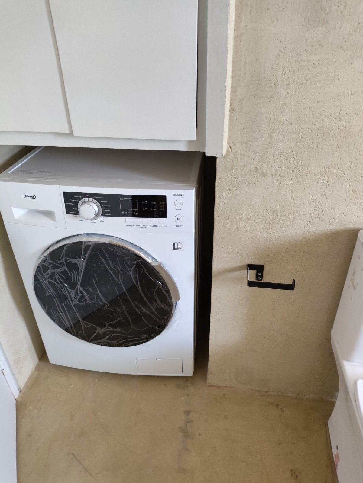 Λειτουργικός Σχεδιασμός: Προβλέφθηκε ειδική θέση για το πλυντήριο κάτω από χτιστό πάγκο ή εντοιχισμένη κατασκευή, διασφαλίζοντας ότι οι οικιακές συσκευές δεν επηρεάζουν την οπτική αρμονία του δωματίου.